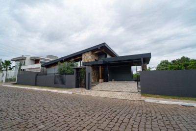 Descrição › Localizada no bairro Montanha, em Lajeado/RS, esta casa de alto padrão está disponível para aluguel. Com 4 dormitórios, sendo 3 suítes, e 5 banheiros, o imóvel conta com uma área total de 375m². Possui uma série de comodidades, como adega, área gourmet, churrasqueira, piscina, energia fotovoltaica e muito mais. Com esquadrias em PVC e vagas de estacionamento para 4 carros, esta casa é ideal para quem busca conforto e sofisticação. Agende uma visita e venha conhecer!